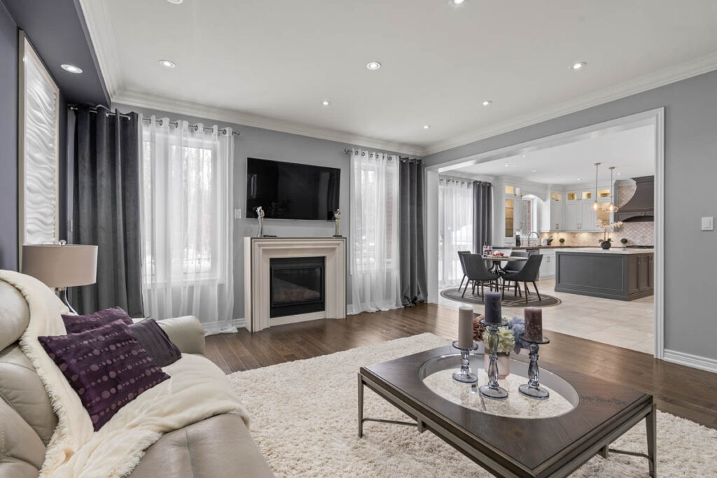 Семейная гостиная с газовым камином гармонично сочетается с формальными гостиной и столовой, идеально подходящими для приёма гостей. Важное преимущество современного дома — кабинет на первом этаже, идеально подходящий для работы из дома.