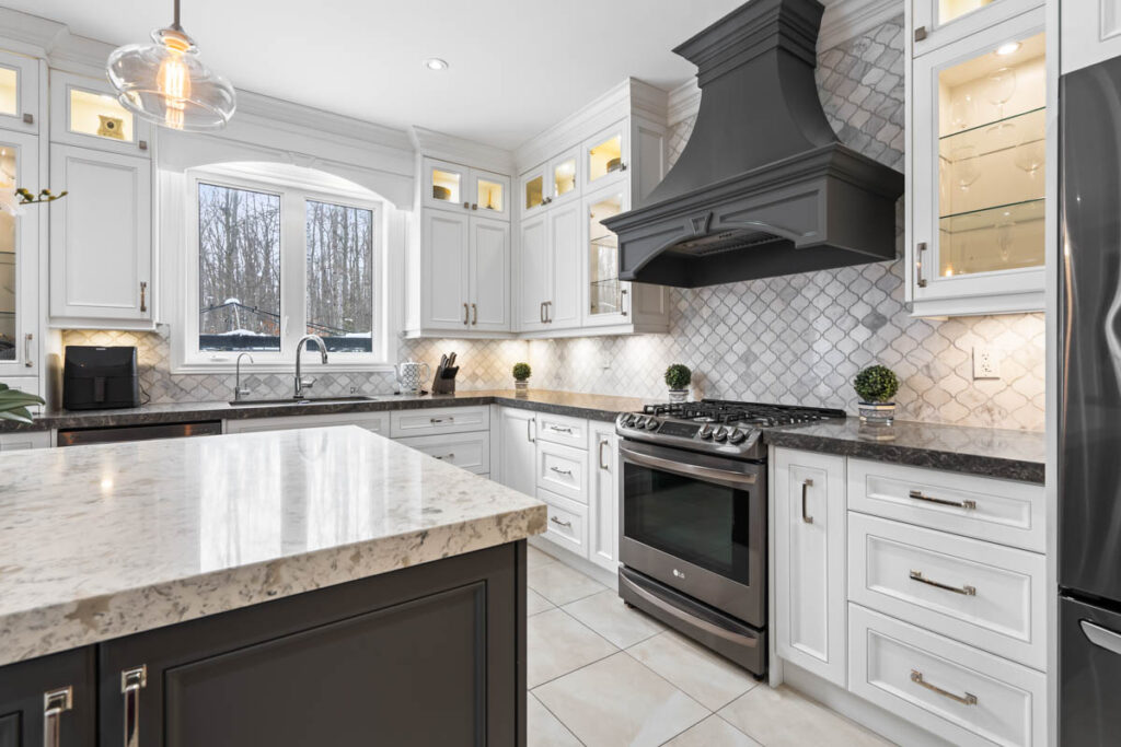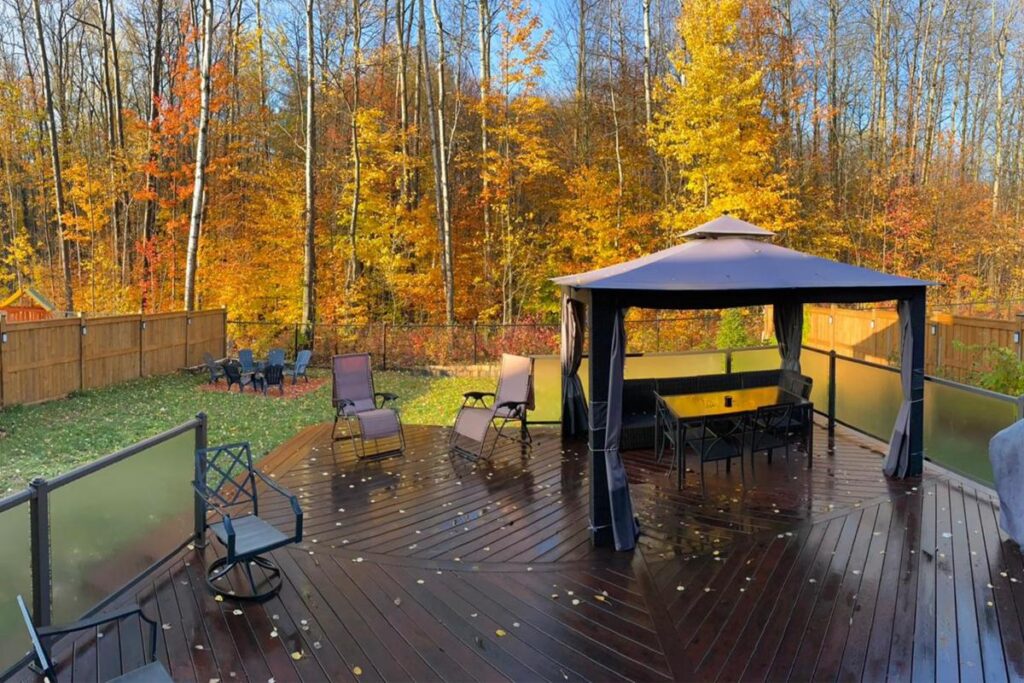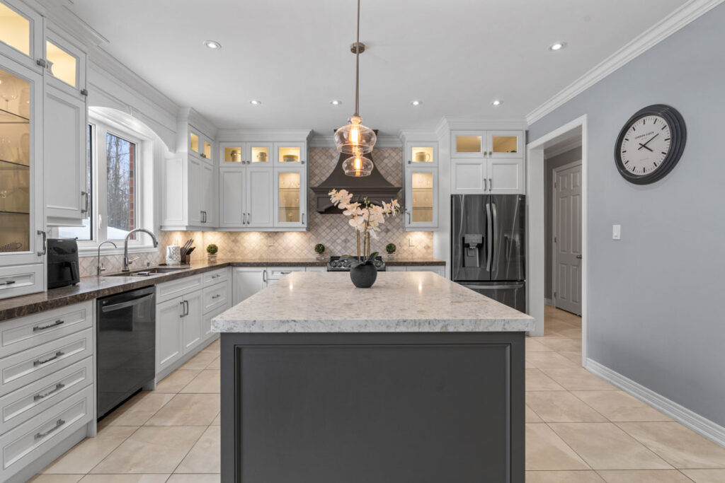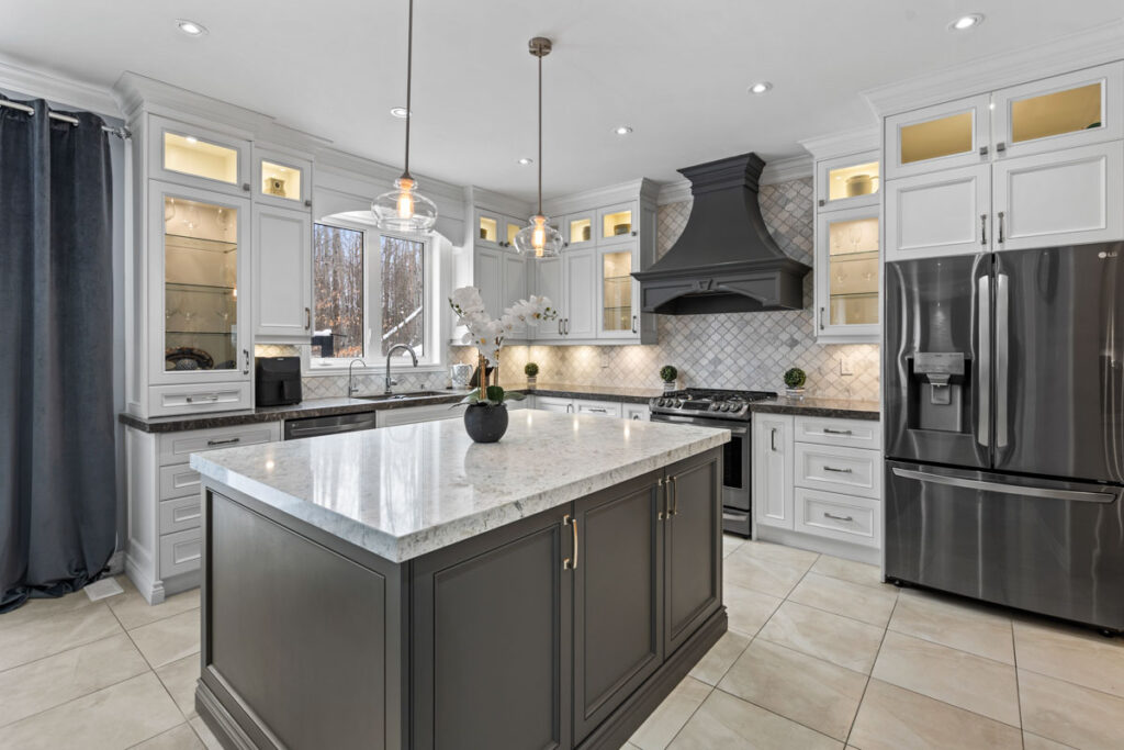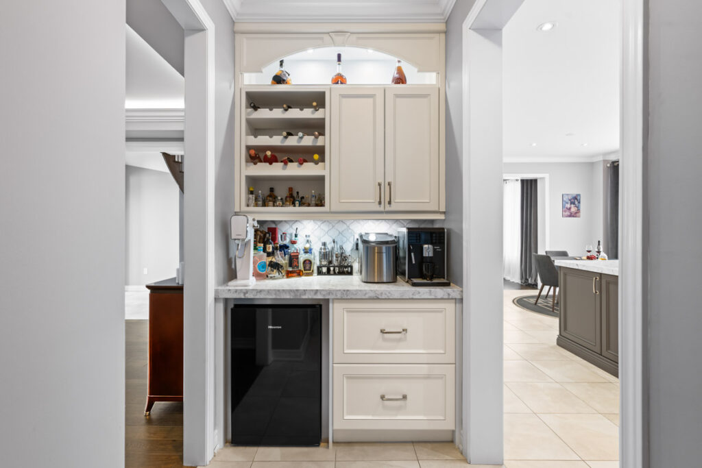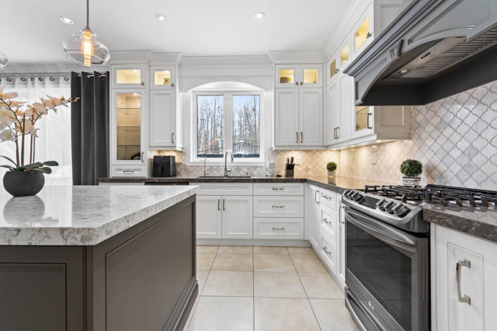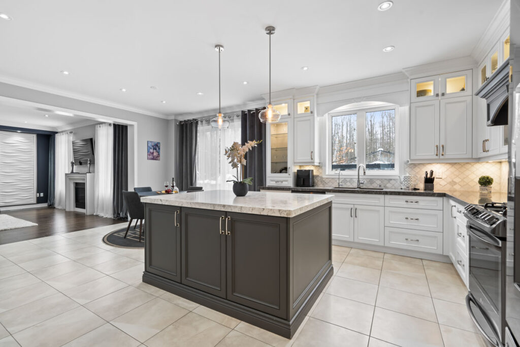 Эксклюзивная кухня для гурманов создана для настоящих ценителей — просторный остров, кварцевые столешницы, увеличенное количество шкафов и кладовая walk-in. Большая раздвижная стеклянная дверь ведёт в полностью огороженный задний двор с видом на лес, где расположены большая терраса, зона для костра и там достаточно места для строительства бассейна.