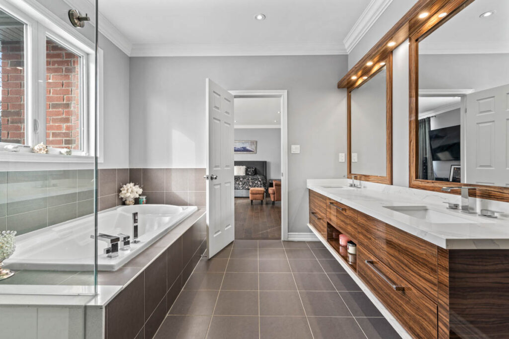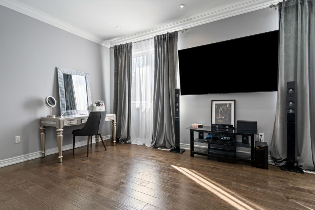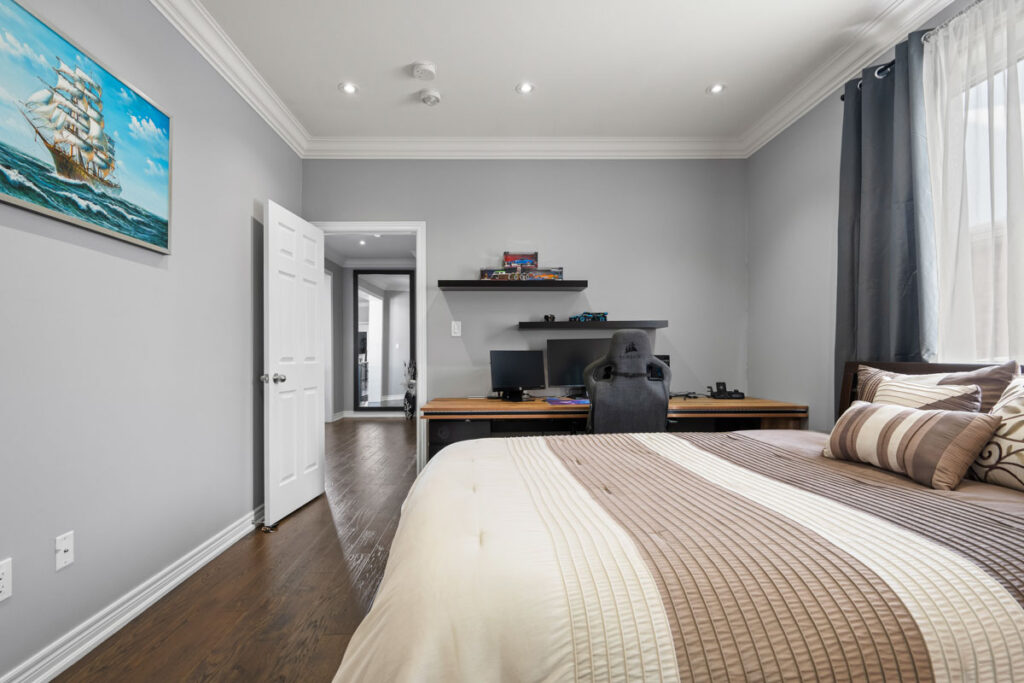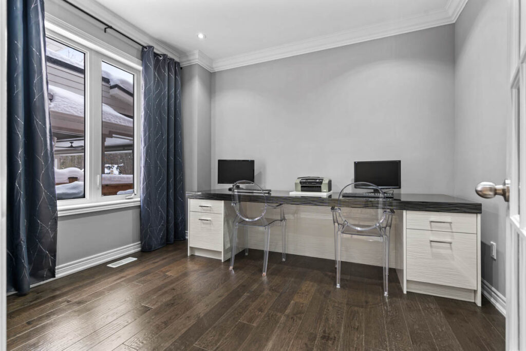 Дом восхищает вниманием к деталям: потолки высотой 9 футов на первом и втором этажах, элегантные потолочные карнизы, точечное освещение, паркетные полы, а также мебель выполненная по индивидуальному заказу, как и гардеробные во всех спальнях.