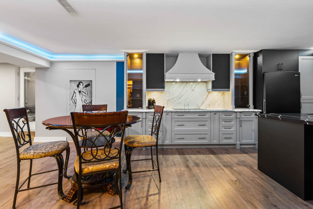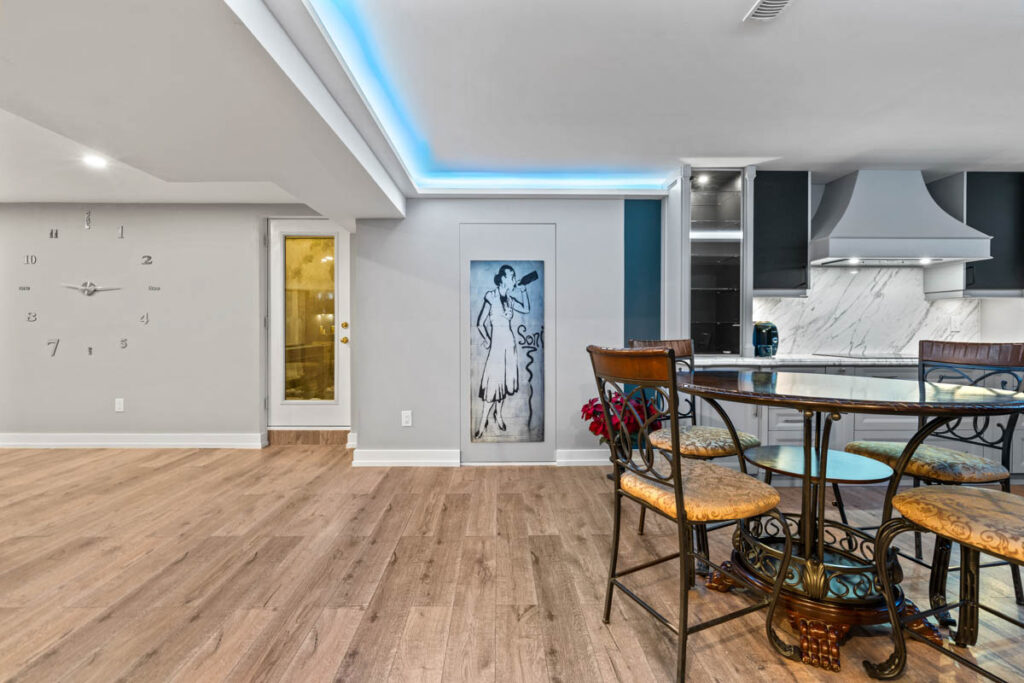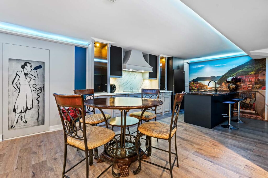 Полностью отделанный цокольный этаж площадью около 2 000 кв. футов с отдельным выходом на улицу включает собственную кухню, сауну, игровую комнату и зону отдыха — отличное решение для большой семьи или дополнительного дохода.